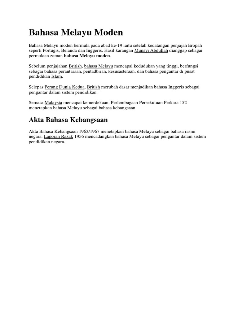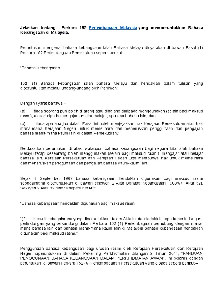 Akta bahasa kebangsaan 1967 memperuntukkan bahawa selepas 1 september 1967, bahasa melayu hendaklah digunakan bagi oleh itu, sifat perbendaharaan kata bahasa melayu juga turut mengalami perubahan. Tingkatan 5 bab 8 dasar pendidikan kebangsaan soalan spm. Akta bahasa kebangsaan 1963/1967 menetapkan bahasa melayu sebagai bahasa rasmi negara. Laporan razak 1956 mencadangkan bahasa melayu sebagai pengantar dalam sistem pendidikan negara. Geris boleh dibenarkan dalam parlimen.