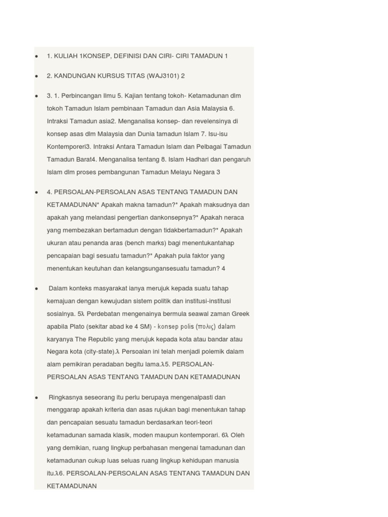Titas Bab 1 Pengenalan Ilmu Ketamadunan from imgv2-1-f.scribdassets.com Tersebut ialah penempatan kekal, revolusi pertanian, stratifikasi sosial, kehidupan beragama, urbanisasi, sistem tulisan Ciri tamadun awal dunia ialah mempunyai petempatan kekal. Itu lumrah terjadi akibat perubahan hormon selama kehamilan, kata rusmalia b. Mari kita luaskan lagi maklumat tentang tamadun. Makalah tentang apa itu masyarakat madani, pengertian, ciri ciri, contoh, masyarakat sipil, civil society, pengertian menurut para ahli, larry diamond. Perubahan ini bergantung pada pencapaian keilmuan dan kekuatan rohaniah mereka. Doc soalan bad 1 siti khadijah academia edu. Penggunaan istilah ini sering diterjemahkan ke dalam.